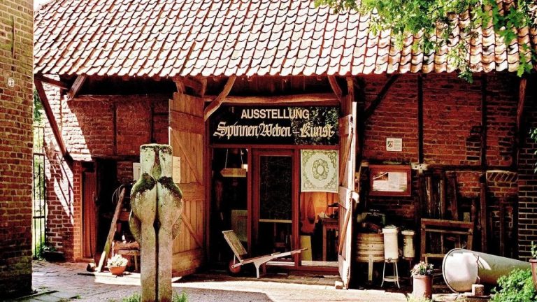 Ab dem 12. April 2026 zeigt das Textilmuseum „Die Scheune“ in Hinsbeck die Ausstellung „Verdrehte Fäden – schöne Bänder“