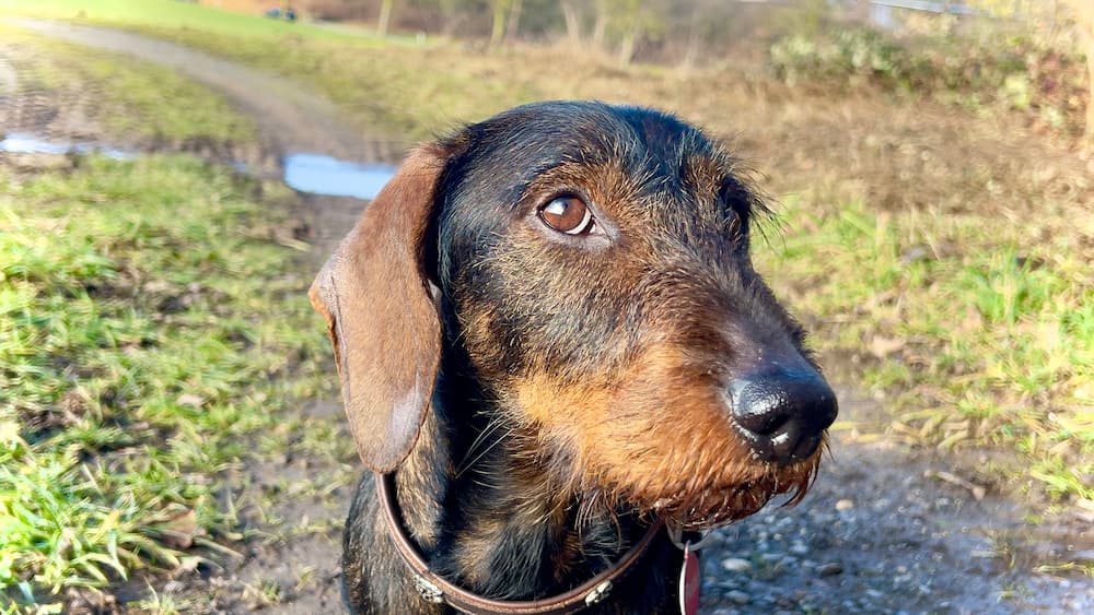 Rudi muss hier leider an die Leine: Zwar ist die Trasse ein kombinierter Rad- und Fußweg und gegenseitige Rücksicht wäre geboten. Aber die selbsternannten Anwärter auf das Gelbe Trikot sind mir dann doch ein wenig zu fix unterwegs. Und wir wollen ja nicht, dass der Dackel unter die Räder kommt.